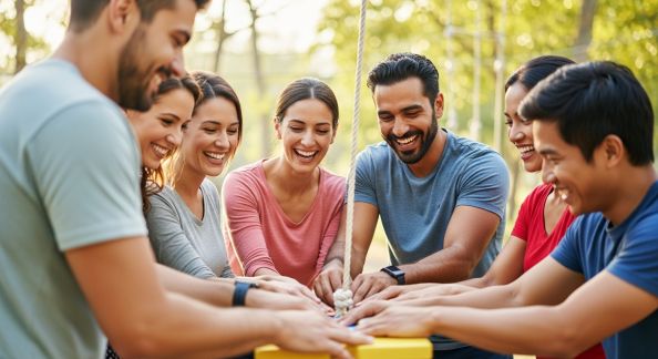- Objectifs : stimuler l’énergie de groupe, améliorer la confiance et permettre une expression physique du stress (marche nordique, yoga en équipe, parcours ludiques, mini-olympiades, jeux coopératifs en plein air).