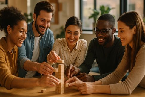 Construire ensemble, c’est s’organiser, se répartir les missions et visualiser immédiatement l’impact de la coopération. En atelier ou en extérieur, proposez à vos équipes de réaliser en un temps limité la plus haute tour (avec des kaplas, cartes ou spaghettis), un pont permettant de supporter une contrainte, ou une structure artistique atypique.