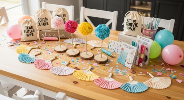 - Des stickers adhésifs éphémères (« Team Bride », « EVJF Paris 2024 », etc.)